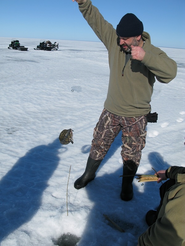 Когда вопросы со снегоходами и егерями решены, можно смело отправляться на рыбалку. Первый по популярности способ лова здесь – блеснение. Используются и блесны, и балансиры. Хорошо берут окунь, судак, щука.
